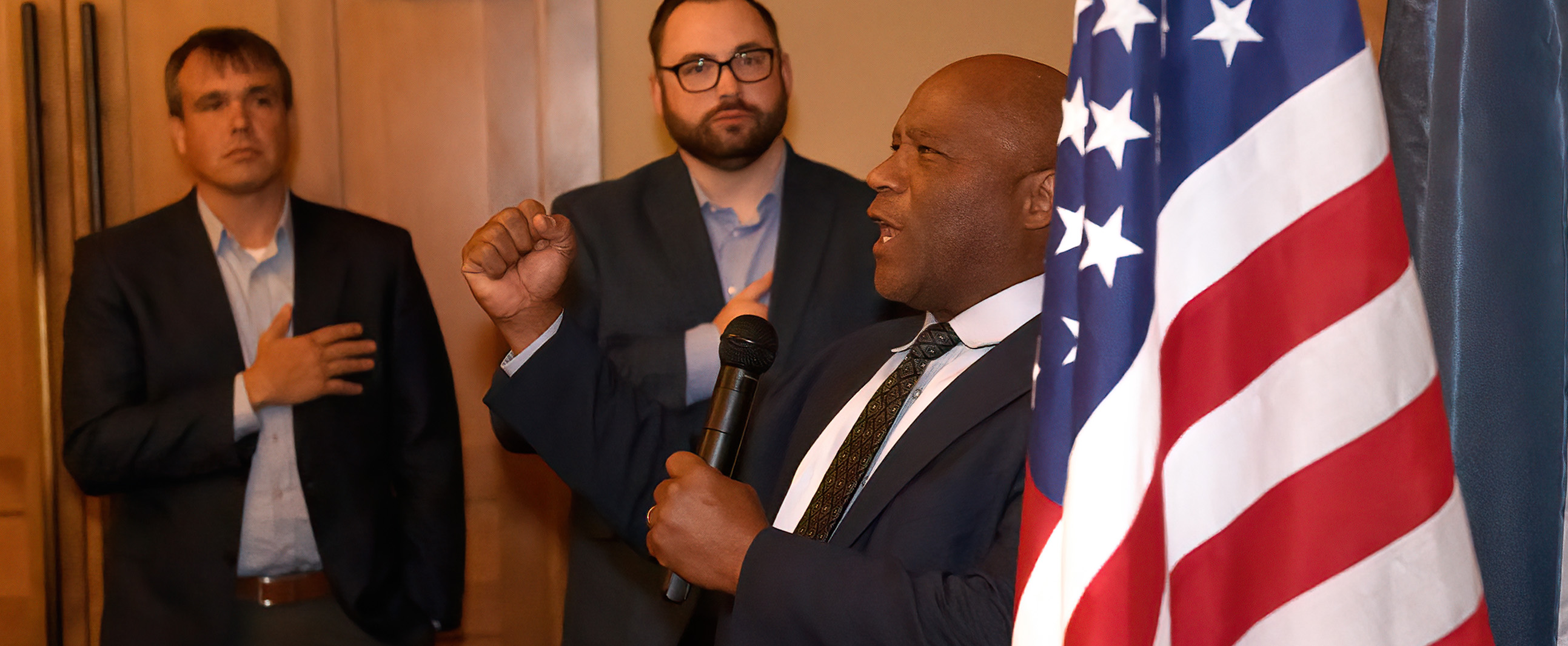 When Rey sang the national anthem at that event, the room transformed. "When we saluted, there was a unity that was so powerful that many started crying," he recalled. "Men [with] tears flowing over the national anthem. It reminded them of who they are," he said.